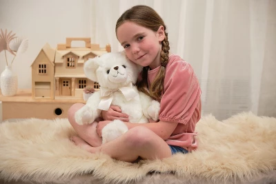 • READY TO HUG: Weve paid attention to every detail, from the ultra-soft, washable plush fabric, to the gently poseable floppy body and child-safe weighted inner bean bags, to the classic ribbon bow. This bear is ready for a lifetime of hugs and cuddles