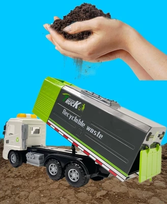 - Both trash cans can be locked into place onto the “BIN TIPPER” located on the side of the toy. With a turn of the lever, watch as the can lifts higher and higher than tips over to pour out. Need more action ? Well why don’t you easily dump out the contents (using the “backdoor”) as well and start all over ! Holds Dirt and Sand very well. Do Not Use Water !