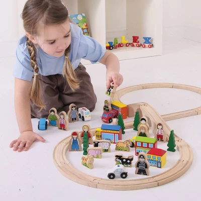 Accessorize your wooden train set with our Trackside Wooden Train Set Accessories. Workers, shoppers, farm animals, vehicles, houses and trees are all part of the backdrop that’ll engage bright young minds for hours at a time.