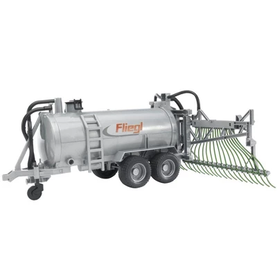 Give your crops every advantage with this modern sprayer used to spread pesticide and fertilizer. The tank trailer can fit onto any Bruder tractor, and the tank can actually be filled with water and dripped out through the hose. The sprayer arms can be folded up when the trailer in not in use.