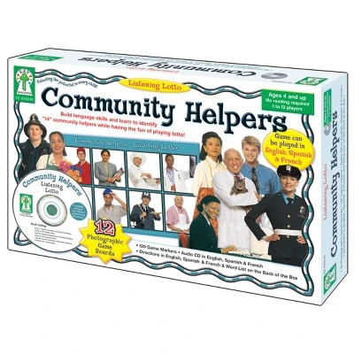 Reinforce listening and early reading skills, phonemic awareness, positional concepts, and much more with these Listening Lotto games! To play, students listen to the sounds on the CD and place tokens on the images on their game cards that match what they hear. Each game set includes 12 game cards (5.5″ x 8.5″ each) with 8 photos per card, 120 game tokens, an audio CD, and directions in English, Spanish, and French. Community helpers include cook, florist, veterinarian, teacher, firefighter, law enforcement officer, mail carrier, computer operator, construction worker, seamstress, grocer, doctor, delivery person, and waiter. | Key Education products are intended to engage and educate young and special learners, as well as assist teachers in building a strong and developmentally appropriate curriculum for these children. The product line�comprised of teacher/parent resource books, photographic learning cards, and other activity- and game-oriented materials�is designed to assist in Unlocking the Potential in Every Child.