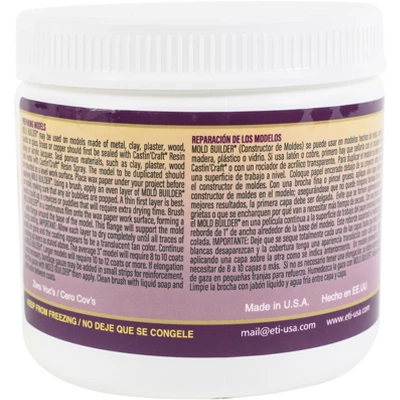 Environmental-Castin’Craft Mold Builder. A natural liquid latex rubber used to make your own molds. Create highly detailed reusable molds. Can be used on models made of metal, clay, plaster, wood, plastic or glass. Brass or copper should first be coated with an acrylic lacquer or shellac. Seal porous materials, like clay, plaster and wood with a paste wax. This package contains one 16oz jar of castin’craft mold builder. Conforms to ASTM D 4236. Made in USA.