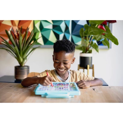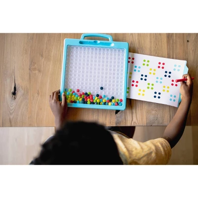 It’s FUN o’ clock on the dot with this self-contained, travel-friendly, and mess free Dot Art! This kit is perfect for travel; all the beads are self-contained and the magnetic pen and activity cards are stored easily in the back of the designer. Just use the magnetic pen to pick up the beads and place them into the grid and when you are ready for a new design, dump them out for endless fun. We’ve got you covered with 50 illustrations and patterns, or remove the cards to create your own dot masterpiece. This on-the-go activity will keep kids engaged while nurturing creativity and independent play.