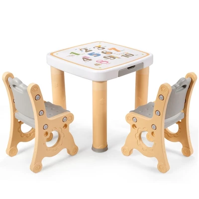 Costway Multifunctional Kids Desk & 2 Height-Adjustable Chairs W/ Non-slip Point Pink Blue Natural