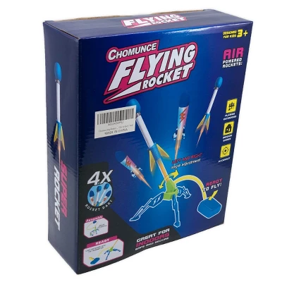 A stomp of your foot will send soft foam rockets soaring with our Flying Rocket Kit. Each launcher can be articulated to fire at multiple angles and is connected to a foot pump that provides power. The kit includes two 7” x 2 ¼” motion-activated flashing/Illuminating foam rockets and two 11” x ½” foam rockets that illuminate and flash when activated by the user. Air compressed by stamping on the foot pump propels the soft foam rockets great distances when fired from its tripod launcher. Some assembly needed.
