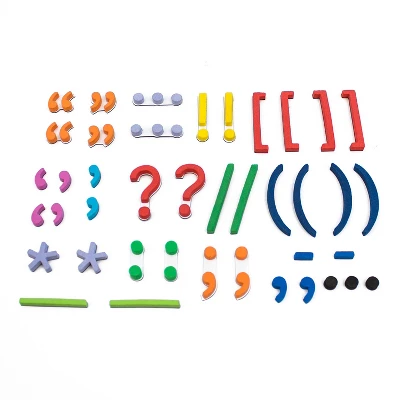 Junior Learning Rainbow Punctuation Marks, 40 Pieces | These brightly colored magnetic punctuation marks are idea for teaching how to punctuate text. Children can use these punctuation marks with magnetic letters, words or with written text from a white board marker. The set includes: commas, semi colon, colon, ellipses, exclamation marks, question marks, speech marks, apostrophes, quotation marks, forward slashes, parentheses, square brackets, under scrolls, hyphens, asterisks and full stops. Comes in a handy storage box with 40 pieces.