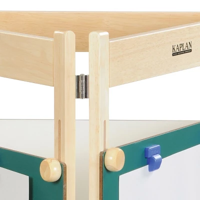Trifold easel gives 3 children room to paint with minimal floor space! Ideal for use in classrooms or other learning centers. Painting trays are easy to clean simply by wiping down with a wet cloth, no chemicals necessary. Each of the 3 – 24″ chalkboards with their attached trays are adjustable in height, growing with the child, measuring from 35″H to 42 3/4″H. The height of the easel measures 48″H. Some assembly required.