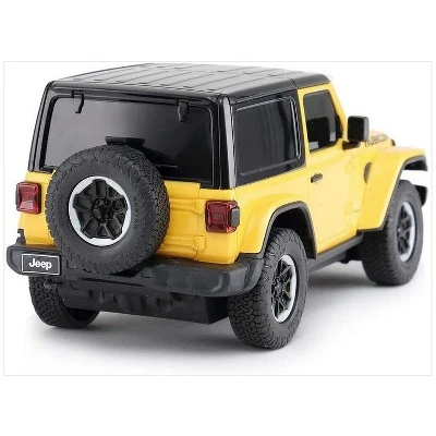 Fully licensed and a very nicely designed replica of the Wrangler; Comes in yellow, doors open manually; LED headlamps and taillights will be working as the Jeep moves forward and reverses; features with a streamlined body, high gloss paint job, 4-wheel independent suspension system, shock absorption, differential mechanism, rims wrapped in grip tires, steering wheel, rearview mirror, realistic dashboard and more.