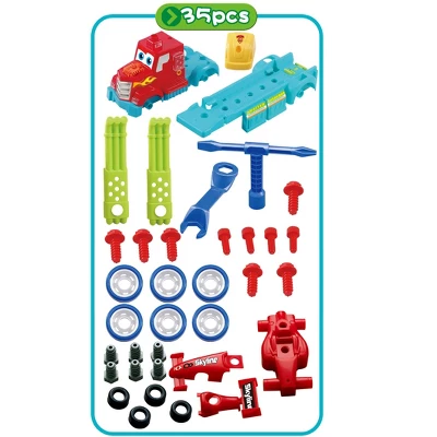 Kids can now learn to take-a-part their own toy vehicle and try to reassemble them again. The racing car carrier enables kids to differentiate the different types of tools needed to build the toy. It also strengthens their motor skills and teaches them about which tool goes along with the screws or bolts. There are several tools such as a flat head, screw driver, wrench, and other parts for assembly. Parents can teach their kids how to assemble it with an easy to read manual. This toy will bring hours of imaginative fun and makes a great gift for kids who simply love to take things apart. (Batteries are sold separately)