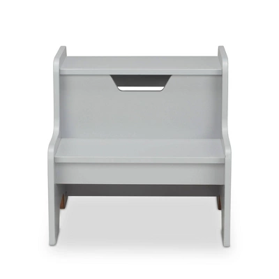 - Sturdy wooden two-step step stool for kids in gray to fit any home décor (also available in white, natural, and espresso)