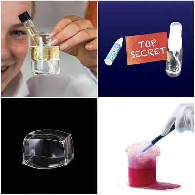 - Experiments include: Hide a secret message/reveal a secret message (pH science), Make it Red with an Acid (pH, color-changing), Make it Blue with a Base (pH, color-changing), Oil Spill Cleanup (hydrophobic substances), Vanishing Test Tube (optics), Disappearing Water (polymer science), Make a Square Bubble (surface tension), and more!