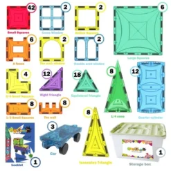 Mag Genius – 60 Pieces Of Mathematically Shaped Colorful And Transparent Magnetic Building Tiles
