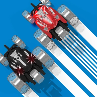 - DUAL JOYSTICK CONTROL: The unique dual joystick remote features left and right control. Each joystick independently operates the left or right side of the car at turbo speed, making it easier to flip and spin!