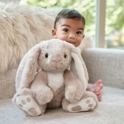 Bearington Boomer Taupe And White Plush Stuffed Animal Bunny Rabbit, 10.5 Inches