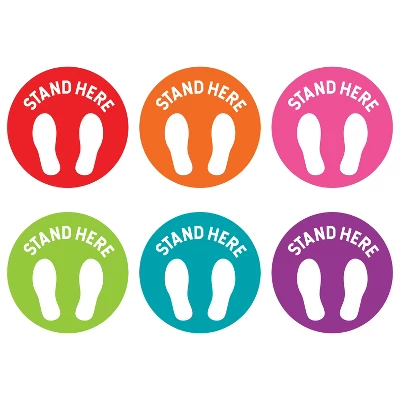 Teacher Created Resources Spot On Stand Here Carpet Markers, 4″ | Help students quickly identify where to sit or stand. These carpet markers stay strong but can be removed easily and used again and again. They attach firmly to carpet, no slipping, and can be removed with out causing damage. Great to promote social-distancing! Each marker is 4″ in diameter. Each pack includes 12 pieces in 6 colors.