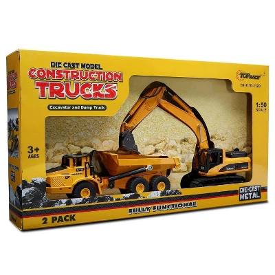 Top Race’s sandbox construction toys are designed to be exceptionally durable, safe, and fun! Each set includes a heavy duty excavator and dirt dump truck, both made of high-quality diecast metal components and rubber tires. Ignite your child’s imagination with a 1:50 scale model, perfect for use indoors or outdoors. Let them take on a role as a site manager, digger, or truck driver and enjoy hours of imaginative play!
