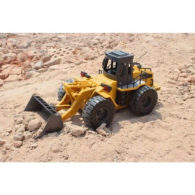 Top Race TR-112G is a 6 channel full functional remote dump truck with lights and sounds. This 1:18 scale RTR Ready to Run truck comes with a 4.8v rechargeable battery and a 2.4Ghz remote control that allows you to control up to 100 feet and several trucks at the same time. The transmitter uses 2 AA Batteries (not included). It is the perfect gift for your loved ones. The front loader is not your average vehicle to play with. We’re talking about serious construction business here. Our RC Front Loader can drive right through dirt and mud, and climb over sticks and stones.