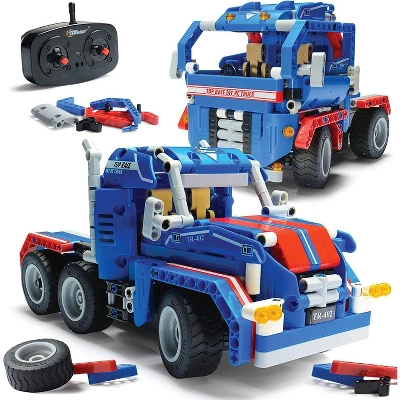 - 455pc RC car building set w/trailer & car blocks, 2in1 RC car kit.
