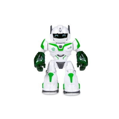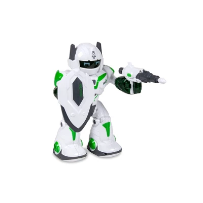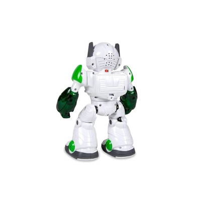 Get ready to have a blast with this World Tech Toys Smart Bot Auto Function Teaching Robot. The awesome robot features LED lights that flash in the hands and eyes, a futuristic design with a white and green body color scheme. The Smart Bot comes with a protective shield as well as a spring loaded blaster with a launching missile that you launch by pulling the lever. This Smart Bot is fully automatic, it walks, twists and rotates all on its own. Let this World Tech Toys Smart Bot Auto Function Teaching Robot run wild. Get yours today!Features: Electric Powered Durable Polymer Construction Flashing LED Lights Ages 6+ Spring Loaded Blaster with Launching MissileIncludes: World Tech Toys Smart Bot Auto Function Teaching RobotSpecifications: Length: 7.50 Inches Width: 7.25 Inches Height: 8.75 InchesBattery Requirements: Robot: 3 AA Batteries (Not Included)